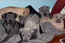 Chiens thaïlandais à crête dorsale bleus présentés dans une exposition canine en Estonie.