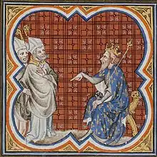 Le partage du regnum ne prend pas en compte la répartition des provinces ecclésiastiques. Le clergé a calqué le mode de division du territoire de l'administration civile romaine, en découpant le territoire en provinces, subdivisées en diocèses, dont les limites correspondent à celles des cités romaines. Chaque diocèse est dirigé par un évêque. En plus de son autorité religieuse, l'affaiblissement de l'administration romaine lui permet d'étendre son pouvoir aux domaines politiques et sociaux, faisant ainsi concurrence au pouvoir du comte qui est le représentant de l'autorité royale. Chez les Romains, les provinces regroupent plusieurs cités et sont dirigées par un gouverneur exerçant ses fonctions dans la cité du chef-lieu[40]. Ainsi, l'évêque dont le diocèse correspond au chef-lieu est nommé évêque métropolitain (archevêque à partir du IXe siècle) et exerce la fonction de primat sur sa province et ses coprovinciaux suivant les règles établies par le premier concile de Nicée en 325 et le concile de Turin en 398. Conservant l'héritage des droits que leur conférait l'Empire romain, en tant que magister militum, les rois francs peuvent désigner les évêques[41], ceci à l'encontre du clergé, des notables, et du peuple qui doivent pouvoir choisir leur évêque[42]. Or, tous les diocèses du royaume de Soissons appartiennent à la cité provinciale de Reims, propriété de Sigebert. Les évêques du royaume de Soissons sont donc soumis à un évêque métropolitain subordonné à Sigebert[43].