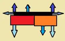 L'usure mécanique dépend largement de l'amplitude et de la direction des efforts exercés sur le système[17]. Ces forces pourraient être directement appliquées au ruban adhésif lui-même comme pour tenter de décoller le ruban ou pourraient être appliquées indirectement au ruban par manipulation du substrat auquel le ruban adhésif adhère. Ce dernier est illustré sur la figure de droite. Il faut noter que la figure suppose que le ruban adhésif maintient ensemble deux morceaux de substrat séparés et que la torsion des deux morceaux dans des directions opposées n'a pas été notée.