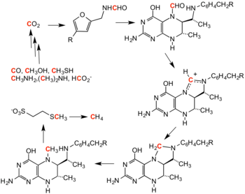 Le méthane, le monoxyde de carbone, le dioxyde de carbone et le méthanol sont aussi des substrats et des produits de procédés enzymatiques. Dans la méthanogenèse, le monoxyde de carbone, le dioxyde de carbone et le méthanol sont convertis en méthane, si des réducteurs adéquats sont apportés[3] La méthanogénèse par les archées méthanogènes est réversible[4].