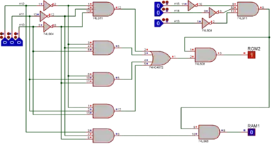 Il faut donc construire un circuit à 6 entrées (de A10 à A15) et 2 sorties CSROM et CSRAM qui contrôleront chacune la broche Chip Select de la ROM et de la RAM.