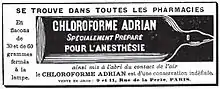 Eugène Soubeiran (en France), Justus von Liebig (en Allemagne) et Samuel Guthrie (en) (en Amérique) ont découvert en même temps le chloroforme, préparé pour la première fois en 1831. C'est à Édimbourg en 1847 que James Young Simpson utilise pour la première fois le chloroforme pour un accouchement, et le présente aux autres médecins. À l'époque, seul l'éther, qui présente de nombreux inconvénients, était utilisé et de nombreuses opérations se déroulaient sans anesthésie : le chloroforme est alors un grand progrès. Son usage comme anesthésiant décolle lors de la guerre de sécession, pour soigner les blessures sur le champ de bataille. La reine Victoria l'utilise en 1853 pour accoucher, ce qui rassure le grand public concernant l'utilisation du produit[16].