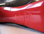 Christian Louboutin, inspiré par le pop art, a basé sa spécificité sur la semelle en cuir rouge visant à devenir le signe distinctif de sa griffe[N 22],[51]. Ce cuir rouge est également utilisé sur des produits complémentaires, comme l'intérieur des sacs à main, ou les housses de protection pour la tablette tactile d'Apple[52].