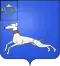 D'azur, au lévrier courant d'argent, au collier de gueules, bordé d'or .[6],[7] |