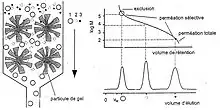 Le mécanisme d'exclusion stérique est fondé sur l’équilibre thermodynamique entre deux phases, le solvant interstitiel dans le volume mort et le solvant contenu dans le volume poreux . Si est le coefficient de partage, le volume d’élution d’une macromolécule est défini par :