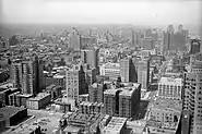 - Construit par l'architecte William Le Baron Jenney, le Home Insurance Building (42 m) devient le tout premier gratte-ciel de l'histoire[15], exploit rendu possible en partie par l'invention de l'ascenseur et de la structure métallique.