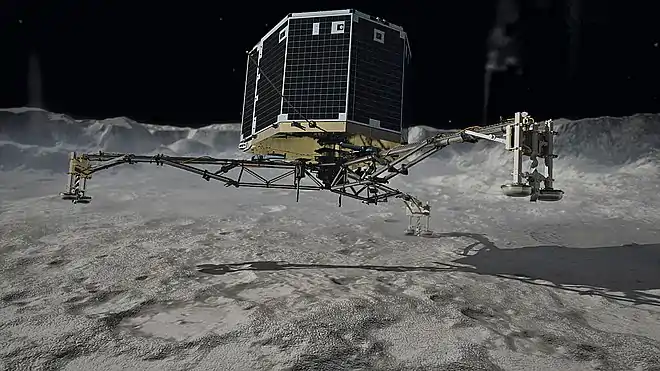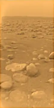 | La sonde européenne Huygens se pose sur Titan. C'est l'objet le plus lointain à ce jour à s'être posé sur le sol d'un astre. | ![]() | ||