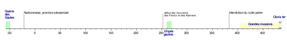 Cette chronologie de la France a pour objet de proposer une chronologie synthétique et visuelle de l'histoire de France et l'histoire de ses gouvernements et d'y associer en entrées les principaux articles permettant une approche synthétique des périodes et évènements marquant son histoire, ainsi que celle de sa formation territoriale.