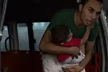Lors d'un autre bombardement près d'un hôpital à l'est de la ville de Gaza a tué un enfant malade et a fait 30 blessés, tandis que quatre autres personnes ont trouvé la mort à la suite d'un raid aérien sur Khan Younès[72].
