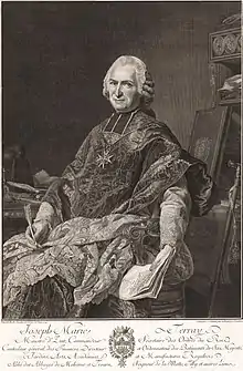 • 1769-1774 : Terray contrôleur général des finances. Il contribue à résorber une partie de la dette et rétablir la trésorerie grâce à des réformes partielles très nombreuses. Des mesures sont mises en place pour imposer le clergé et la noblesse. Elles sont abolies à la mort du roi[33]. À sa sortie de charge, Terray laisse en France une situation financière saine. Le déficit budgétaire est réduit, voire annulé jusqu’en 1778 (100 millions en 1769, 30 millions en 1774, 22 en 1776). Les dettes de l’État sont réduites de 20 millions[34]. De 1770 à 1775, les dépenses engagées par l’État français baissent de 277 à 234 millions de livres, alors que les recettes du fisc augmentent, par les effets conjugués de l’essor de l’économie et de la hausse du seuil des impôts (de 1770 à 1775, le revenu brut de l’État passe de 318 à 377 millions, le revenu net de 169 à 213 millions). Le déficit baisse substantiellement, passant de 108 à moins de 25 millions dans l’intervalle. 1 200 tonnes d’équivalent argent de dépenses sont engagées par l’État français de 1770 à 1775. Les revenus nets montent à près de 800 tonnes. Le déficit est en recul[35].