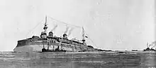 Le cuirassé russeSlava, sévèrement endommagé,