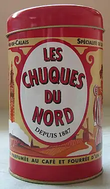 La chuque du Nord est une friandise parfumée au café, et fourrée d'un caramel tendre, de la région Nord-Pas-de-Calais.