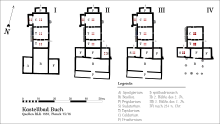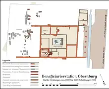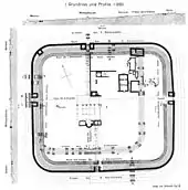![]() Fort de Kapersburg avec la phase de réduction de l'époque du limes tardif (h. dr.) |