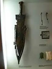 La présence des Germains est aussi montrée à Nida-Heddernheim par la trouvaille de céramique faite à la main et de fibules. À en juger par les objets trouvés, ils proviennent des Germains de la région du Rhin/Weser, près de la frontière de l'empire romain. Le tombeau d'un officier germain en service chez les Romains dans des fouilles du IIIe siècle fait penser à une troupe de mercenaires[56],[57].
