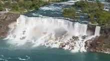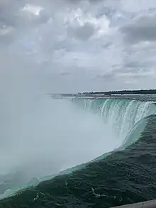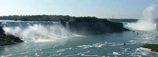 Bien qu'elles ne soient pas particulièrement hautes (57 m), les chutes du Niagara sont très larges. Avec un débit[4] de plus de 2 800 m3/s, elles sont les chutes les plus puissantes d'Amérique du Nord[N 1] et parmi les plus connues[5] à travers le monde.