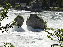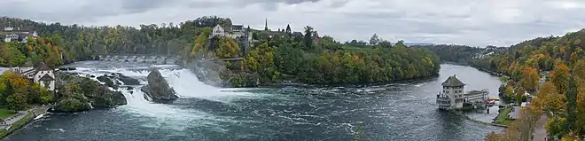 Entre le lac de Constance et Bâle, là où le Rhin forme la frontière entre la Suisse et le land de Bade-Wurtemberg, le lit du fleuve s'est creusé dans les roches calcaires du Jura formant des rapides et des chutes.