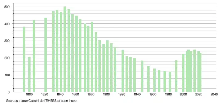 | Rang de la commune dans le département | 476 | 404 | 462 | 358 | 350 | 336 | 348 | 350 |