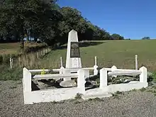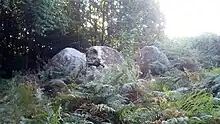 Dolmen en ruine avec sa table brisée d'environ 8 mètres de circonférence[28].