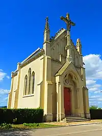 La chapelle Sainte-Geneviève, fut construite sur les plans de l'architecte inspecteur diocésain Edouard Thiérot par l’entrepreneur Demerlé. Le tympan représentant Jésus tenant un livre est attribué au sculpteur Antoine Margotin, père de Léon Margotin. Elle comporte un autel de marbre noir de la société Bulteau-Duran[3].