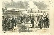 La création d'un carré musulman est autorisée par une délibération du conseil municipal du et d'un arrêté préfectoral du qui prévoit « un enclos spécial pratiqué dans les dépendances du cimetière de l’Est pour l’inhumation des personnes décédées à Paris professant la religion mahométane »[28],[34]. En effet, de nombreux soldats musulmans des colonies sont morts durant la guerre de Crimée, qui oppose de 1853 à 1856 la France, le Royaume-Uni et l'Empire ottoman à la Russie.