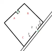 Vue depuis la partie basse en direction de l'entrée.