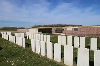 Le cimetière de l'allée de la ferme d'Hem est situé en pleine campagne, à proximité de la ferme éponyme, il compte 597 tombes de soldats, dont 204 sont non identifiés : 367 Britanniques, 138 Australiens, 88 Sud-Africains et 4 Canadiens.