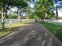 Une rue dans le cimetière nataional de fort Logan lors du week-end du Memorial Day.