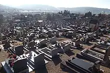 Un cimetière est un groupement de sépultures parfois attenant à un lieu de culte. Espace funéraire qui apparaît au Moyen Âge, il se distingue du champ funéraire préhistorique qui n'abrite pas de monuments, et de la nécropole antique qui est nettement séparée des lieux de culte[1].