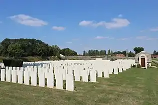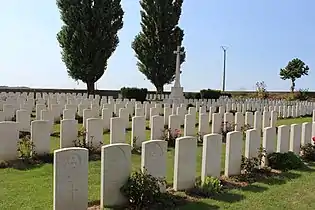Le cimetière contient maintenant 997 sépultures et commémorations de la Première Guerre mondiale dont 235 ne sont pas identifiées, mais il y a des monuments spéciaux supplémentaires à 29 victimes connues ou supposées être enterrées parmi eux, et à deux victimes enterrées dans le nouveau cimetière britannique d'Épehy, dont les tombes n'ont pu être trouvées lorsque les tombes provenant des cimetières provisoires des environs ont été rapportées. Le cimetière a été conçu par Sir Herbert Baker.