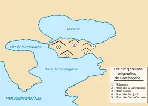 Les cinq collines de Carthagène sont une série de promontoires sur lesquels le général carthaginois Hasdrubal le Beau construisit en 227 av. J.-C. l'enceinte urbaine de Qart Hadasht, aujourd'hui Carthagène (Espagne), en développant le site ibère antérieur qui se nommait Mastia.