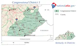 Le 5e district congressionnel du Kentucky est un district de l'État américain du Kentucky. Situé au cœur des Appalaches dans le sud-est du Kentucky, il représente une grande partie du bassin houiller de l'est du Kentucky. Le district rural est le deuxième district le plus pauvre du pays[1] et, selon le recensement américain de 2010, a le pourcentage le plus élevé d'Américains blancs du pays. Il contient les comtés de Bell, Boyd, Breathitt, Clay, Elliot, Floyd, Harlan, Jackson, Johnson, Knott, Knox, Laurel, Lawrence, Lee, Lincoln, Leslie, Letcher, Magoffin, Martin, McCreary, Menifee, Owsley, Perry, Pike, Pulaski, Rockcastle, Rowan, Wayne, Whitley, Wolfe et certaines parties des comtés de Bath et Carter[2]. Dans le district se trouvent les principales villes économiques d'Ashland, Pikeville, Prestonsburg, Middlesboro, Hazard, Jackson, Morehead, London et Somerset. C'est le district le plus rural des États-Unis, avec 76,49 % de sa population dans les zones rurales[3]. Il est représenté par le Républicain Hal Rogers depuis 1981.