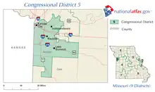 Le 5e district congressionnel du Missouri est représenté à la Chambre des représentants des États-Unis par le Démocrate Emanuel Cleaver, ancien maire de Kansas City, depuis 2005.