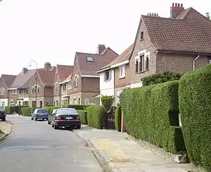 La petite cité-jardin du Tuinbouw (jardin cultivé) est construite à partir de 1922 d’après les plans de Jean-Jules Eggericx dans une partie non urbanisée de la commune. Les maisons doubles couvertes de crépi sont placées en retrait de la voirie et entourées d’un jardin.