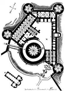Le château comprend quatre tours d'angle que rejoignent de hautes courtines contre lesquelles étaient adossés des logis, et enfin d'un imposant donjon que ceignait une chemise. Toutes les caractéristiques du château philippien furent reprises dans le plan et l'agencement du château, n'était que les dimensions en étaient magnifiées. Au centre du château, une cour prenait place entre les logis et la chemise du donjon où fut élevée une chapelle castrale de style gothique rayonnant, dans la continuité perpendiculaire du logis sud. Les logis des courtines sud et sud-ouest étaient plus hauts d'un étage que celui de la courtine nord, de sorte que la courtine nord est plus basse que les deux autres.