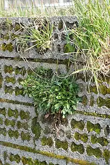 Sur les soubassements de grès et les parements de briques se développent en particulier la rue-de-muraille (Asplenium ruta-muraria), le pavot douteux (Papaver dubium), la cymbalaire des murs (Cymbalaria muralis) et la remarquable doradille noire (Asplenium adiantum-nigrum) caractéristique des falaises siliceuses.