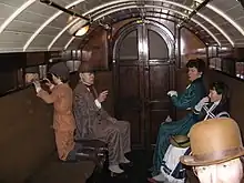 L'exploitation a commencé avec des trains composés d'une motrice et trois voitures qui pouvaient transporter chacune trente-deux passagers[14]. Elles étaient constituées de bancs longitudinaux, avec des portes coulissantes aux extrémités, donnant sur une plate-forme à partir de laquelle on pouvait monter et descendre. Comme il n'y a rien d'intéressant à observer dans un tunnel, les fenêtres étaient toutes situées dans une bande étroite en haut des flancs des voitures. Des portiers se tenaient sur les plates-formes et s'occupaient de l'ouverture des portes et de l'annonce des stations aux voyageurs. En raison de leur intérieur claustrophobique, les voitures furent rapidement surnommées « cellules capitonnées »[20].