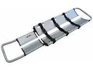 Cette civière se compose d'une structure tubulaire réglable en longueur et qui se sépare en deux. Des lames, profilées en forme d'aube de moulin à eau, sont fixées sur les tubes. L'ensemble peut être en métal, ou bien le tube est en métal et les aubes sont en plastique avec armature de métal.