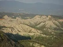 La valle dei calanchi, une zone de badlands, est située entre le lac de Bolsena à l'ouest et la vallée du Tibre à l'est à l'intérieur de la commune de Bagnoregio. Elle est constituée de deux vallées principales: le fossé du Rio Torbido et le fossé du Rio Chiaro. À l'origine, ces lieux devaient être plus accessibles et praticables et étaient traversés par une antique route commerciale qui reliait la vallée du Tibre au lac de Bolsena.