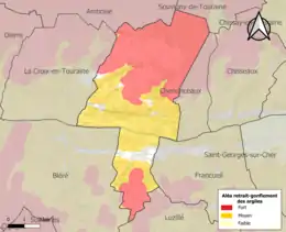 La commune est vulnérable au risque de mouvements de terrains constitué principalement du retrait-gonflement des sols argileux[31]. Cet aléa est susceptible d'engendrer des dommages importants aux bâtiments en cas d’alternance de périodes de sécheresse et de pluie. 94,9 % de la superficie communale est en aléa moyen ou fort (90,2 % au niveau départemental et 48,5 % au niveau national). Sur les 862 bâtiments dénombrés sur la commune en 2019, 666 sont en aléa moyen ou fort, soit 77 %, à comparer aux 91 % au niveau départemental et 54 % au niveau national. Une cartographie de l'exposition du territoire national au retrait gonflement des sols argileux est disponible sur le site du BRGM[32],[33].