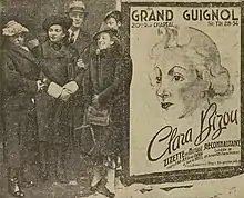 Elle passe au théâtre et joue cette fois sous le nom de Clara Bizou au théâtre Dejazet, puis au Grand-Guignol qu'elle dirige avec Jean Bary, puis seule, avant d'être écartée en 1939. Elle prend alors la direction du Moulin Bleu, rue de Douai, qu'elle renomme le Rideau de Montmartre[3],[4] et où elle entraine une grande partie de la troupe du Grand-Guignol dont Paula Maxa[5],[6]. Elle reprend la formule du Grand Guignol, deux drames, deux comédies dans la même soirée et joue dans les comédies, puis revient au genre du Moulin Bleu avec des jeunes femmes peu vêtues[7],[8].