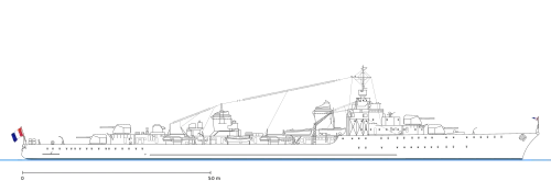 | Armement | 4x2 canons de 138 mm 2x2 canon de 37 mm AA 2X2 mitrailleuses AA de 13.2 mm 10 (2x3,2x2) tubes lance-torpilles de 550 mm 32 Grenades anti-sous-marine et 40 mines |