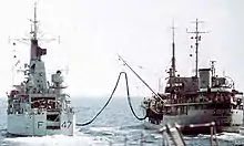 | A169 | RFA Brown Ranger[4] | Harland and Wolff (Belfast) | Reste en service jusqu'à sa démolition à Gijón (Espagne) en mai 1975. | ![]() Opération de ravitaillement en mer du HMS Danae (F47) par le RFA Brown Ranger (A169) ( Janvier 1970) | |||