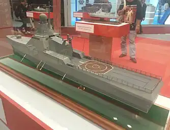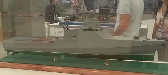| Armement | 1 canon automatique AK-176 de 76,2 mm ou un canon de 57 mm 1x8 missiles surface-air à courte portée Igla Système de lancement vertical pour missiles surface-air Shtil-1 (proposé) Système de lancement vertical pour missiles de croisière Kalibr 3M-54 (proposé) 2x2 mitrailleuses KPV de 14,5 × 114 mm Conteneurs pour missions diverses dont un emportant des torpilles Paket-E/NK (en) de 324 mm (proposé) |