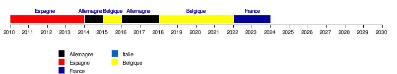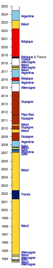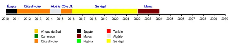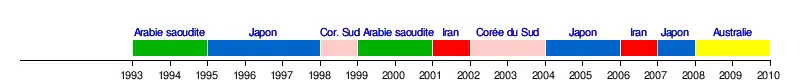 | Confédération | Après la coupe du monde 2014 | Après la coupe du monde 2010 | Après la coupe du monde 2006 | Jusqu'à la coupe du monde 2006 |