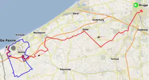Le parcours démarre de Bruges et termine à La Panne. Il reste dans une zone très proche de la côte et est donc quasiment parfaitement plat. Il se conclut par deux boucles longues de 48,3 km autour de La Panne et Coxyde[1].