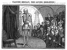 Fils d'un tailleur fripier, Claude Seurat était présenté au public sur scène, lors de tournées, comme une attraction spectaculaire et surnommé « l'homme anatomique ou le squelette vivant » à cause de son extrême maigreur[2].