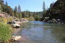 Mais la roue tourne. Le ranch, qui se trouve à cinq kilomètres au sud-est de Wheatland, le long de la Bear River, est dévasté par une crue et un glissement de terrain au début de l’année 1875. Le domaine est finalement vendu aux enchères quelques mois plus tard[17], pour la médiocre somme de 500 $. Le pont enjambant la Bear River est compris dans la vente.