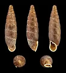 Vue de côté de Clausilia bidentata.