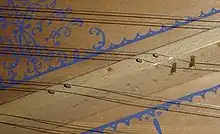 Les marches plaquées d'os, d'ébène ou de poirier noirci, sont ornées en bout de touche (faisant face à l’instrumentiste) de diverses façons : soit de frontons trilobés sculptés dans la masse de la touche, ou de parchemin sur fond d'étoffe, d'arcades tournées en buis, d'une moulure, voire d'arcades en cuir gaufré…