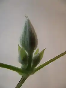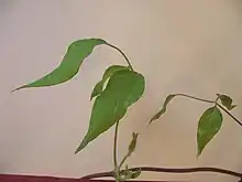 Les feuilles immatures sont lancéolées puis ovales et pointues à maturité. Elle possèdent également un léger duvet sur la face des feuilles.